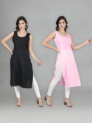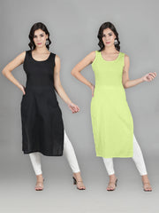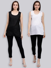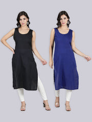 Seva Chikan Cotton Long Slips Combo of Black (Pack of 2)