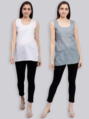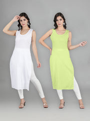 Seva Chikan Cotton Long Slips Combo of White (Pack of 2)