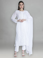 Seva Chikan Embroidered White Cotton Lucknowi Chikankari Kurta SCL4710
