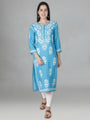 Seva Chikan Hand Embroidered Firozi Blue Modal Cotton Lucknowi Chikankari Kurta-SCL4345