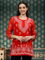 Delineation: Purchase this elegant and comfortable chikan top online from Seva, is ideal for any fashionista. It has coloured rich and attractive chikan embroidery. Buy this classic kurti for any occasion, any festival and any party celebrations.