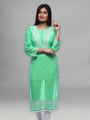 Seva Chikan Hand Embroidered Green Georgette Lucknowi Chikan Kurti-SCL0282