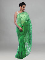 Delineation: Purchase this elegant and comfortable Green chikan saree online from Seva, is ideal for any fashionista. It has Green-coloured rich and attractive chikan embroidery. Buy this classic saree for any occasion, any puja and festival, any party celebrations.