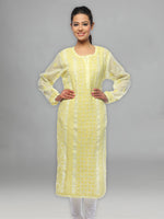 Seva Chikan Hand Embroidered Lemon Cotton Lucknowi Chikan Kurti-SCL0614