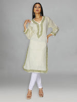 Seva Chikan Hand Embroidered Lemon Cotton Lucknowi Chikankari Kurta-SCL0927