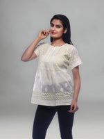 Seva Chikan Hand Embroidered Lemon Cotton Lucknowi Chikankari Short Top- SCL0157