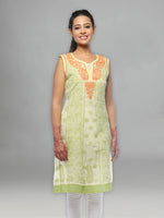 Seva Chikan Hand Embroidered Light Green Cotton Lucknowi Chikan Kurti-SCL0610