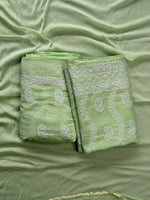 Seva Chikan Hand Embroidered Light Green Cotton Lucknowi Chikankari Unstitched Suit Piece-SCL13090