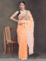 Delineation: Purchase this elegant and comfortable neon orange chikan saree online from Seva, is ideal for any fashionista. It has white-coloured rich and attractive chikan embroidery. Buy this classic saree for any occasion, any puja and festival, any party celebrations.