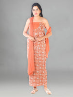 Seva Chikan Hand Embroidered Orange Cotton Lucknowi Chikan Unstitched Suit Piece-SCL1642