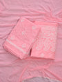Seva Chikan Hand Embroidered Peach Terivoil Cotton Lucknowi Chikankari Unstitched Suit Piece-SCL13031