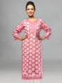 Delineation: Purchase this elegant and comfortable pink chikan Kurti online from Seva, is ideal for any fashionista. It has white chikankari-coloured rich and attractive chikan embroidery. Buy this classic kurti for any occasion, any festival, party celebrations.