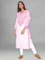 Delineation: Purchase this elegant and comfortable pink chikan Kurti online from Seva, is ideal for any fashionista. It has pink & white chikankari-coloured rich and attractive chikan embroidery. Buy this classic kurti for any occasion, any festival, party celebrations.