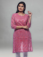 Seva Chikan Hand Embroidered Pink Cotton Lucknowi Chikan Kurti-SCL0231