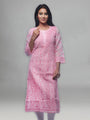 Delineation: Purchase this elegant and comfortable pink chikan Kurti online from Seva, is ideal for any fashionista. It has pink-coloured rich and attractive chikan embroidery. Buy this classic kurti for any occasion, any festival, party celebrations.