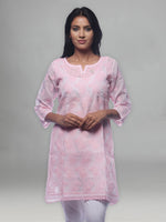 Seva Chikan Hand Embroidered Pink Cotton Lucknowi Chikan Kurti-SCL0324