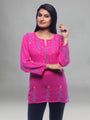 Delineation: Purchase this elegant and comfortable Pink Chikan Top online from Seva, is ideal for any fashionista. It has Blue, Yellow-colored rich and attractive chikan embroidery. Buy this classic short top for any occasion, any festival and any party celebrations.