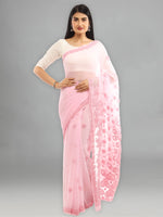 Delineation: Purchase this elegant and comfortable Pink chikan saree online from Seva, is ideal for any fashionista. It has Pink-coloured rich and attractive chikan embroidery. Buy this classic saree for any occasion, any puja and festival, any party celebrations.