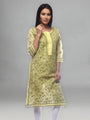 Seva Chikan Hand Embroidered Pista Green Cotton Lucknowi Chikan Kurti-SCL0268
