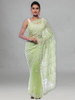 Seva Chikan Hand Embroidered Pista Green Georgette Lucknowi Saree-SCL0365