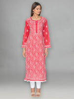 Seva Chikan Hand Embroidered Red Cotton Lucknowi Chikankari Kurta-SCL0982