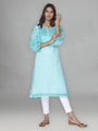 Seva Chikan Hand Embroidered Sea Green Cotton Lucknowi Chikan Kurta-SCL0934