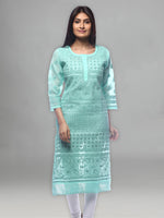 Seva Chikan Hand Embroidered Sea Green Cotton Lucknowi Chikan Kurti-SCL0275