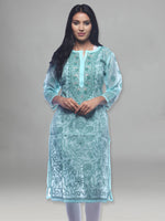 Delineation: Purchase this elegant and comfortable sea green chikan kurti online from Seva, is ideal for any fashionista. It has blue color rich and attractive chikan embroidery. Buy this classic kurti for any occasion, any festival, party celebrations.
