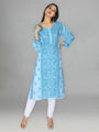 Delineation: Purchase this elegant and comfortable sky blue chikan Kurti online from Seva, is ideal for any fashionista. It has blue chikankari-coloured rich and attractive chikan embroidery. Buy this classic kurti for any occasion, any festival, party celebrations.