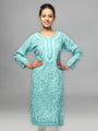Delineation: Purchase this elegant and comfortable turquoise chikan Kurti online from Seva, is ideal for any fashionista. It has turquoise -coloured rich and attractive chikan embroidery. Buy this classic kurti for any occasion, any festival, party celebrations.
