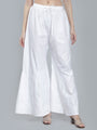 Delineation: Purchase this elegant and comfortable white Chikan pant online from Seva, is ideal for any fashionista. It has white-coloured rich and attractive chikan embroidery. Fabric of the Palazzo offer a relaxed silhouette and comfort to the wearer. Buy this classic lower for any occasion, festival, party celebrations. Pair it with any contrasting color kurta.