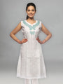 Delineation: Purchase this elegant and comfortable white chikan Kurti online from Seva, is ideal for any fashionista. It has blue chikankari-coloured rich and attractive chikan embroidery. Buy this classic kurti for any occasion, any festival, party celebrations.