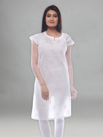 Seva Chikan Hand Embroidered White Cotton Lucknowi Chikan Kurti With Muqaish Work-SCL0313