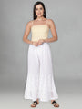 Delineation: Purchase this elegant and comfortable White Chikan Palazzo online from Seva, is ideal for any fashionista. It has white-coloured rich and attractive chikan embroidery. Fabric of the Palazzo offer a relaxed silhouette and comfort to the wearer. Buy this classic lower for any occasion, festival, party celebrations. Pair it with any contrasting color kurta.