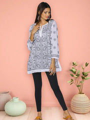Seva Chikan Hand Embroidered White Cotton Lucknowi Chikan Short Kurti SCL1014