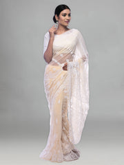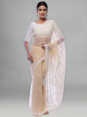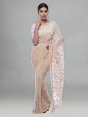 Seva Chikan Hand Embroidered Fawn Georgette Lucknowi Saree-SCL0411