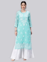 Seva Chikan Hand Embroidered Georgette Chikankari Kurta With Matching Slip