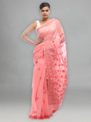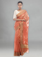 Seva Chikan Hand Embroidered Carrot Pink Cotton Lucknowi Saree-SCL2325
