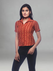 Seva Chikan Hand Embroidered Brown Cotton Lucknowi Chikankari Short Top- SCL0142