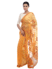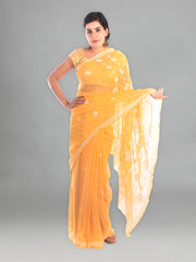 Seva Chikan Hand Embroidered Mustard Georgette Lucknowi Saree-SCL1170