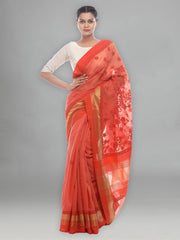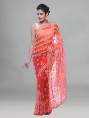Seva Chikan Hand Embroidered Orange Cotton Lucknowi Saree-SCL2485