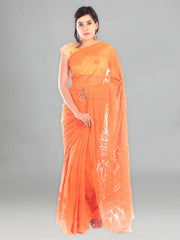 Seva Chikan Hand Embroidered Orange Georgette Lucknowi Saree With Gotta Patti Work-SCL2026