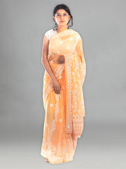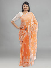 Seva Chikan Hand Embroidered Orange Georgette Lucknowi Saree-SCL0375