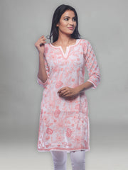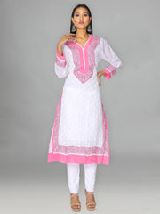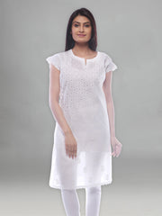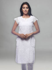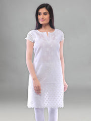 Seva Chikan Hand Embroidered White Cotton Lucknowi Chikan Kurti SCL0359