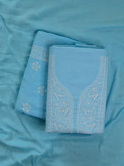 Seva Chikan Hand Embroidered Blue Cotton Lucknowi Chikankari Unstitched Suit Piece-SCL13078
