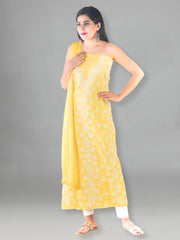 Seva Chikan Hand Embroidered Yellow Cotton Lucknowi Chikan Unstitched Suit Piece SCL1498