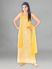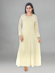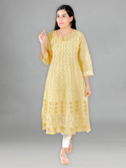 Seva Chikan Hand Embroidered Yellow Cotton Lucknowi Chikankari Anarkali-SCL1238