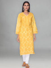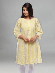 Seva Chikan Hand Embroidered Yellow Cotton Lucknowi Chikan Kurti-SCL0320