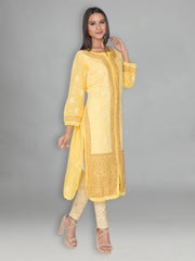 Seva Chikan Hand Embroidered Yellow Cotton Lucknowi Chikankari Kurta-SCL0912