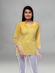 Seva Chikan Hand Embroidered Yellow Cotton Lucknowi Chikankari Short Top-SCL2023